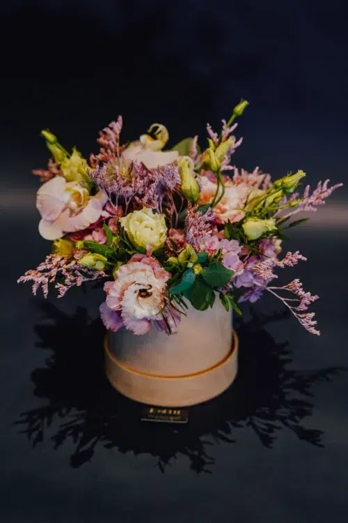 Cette orchidée blanche basse à gros fleurons, 2 tiges , sous une apparence légère et fragile , peut tenir aisément plusieurs mois dans une ambiance de maison ou d’appartement. Elle est présentée dans un cache-pot blanc neutre.